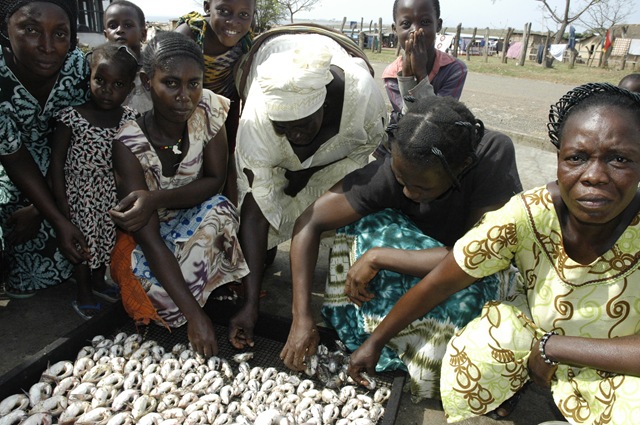 Fischproduzentinnen am Voltafluss in Ghana. Afrikanische Märkte müssen zumindest für eine Übergangszeit geschützt werden, meint die Welthungerhilfe. Foto: Helmut Burlager