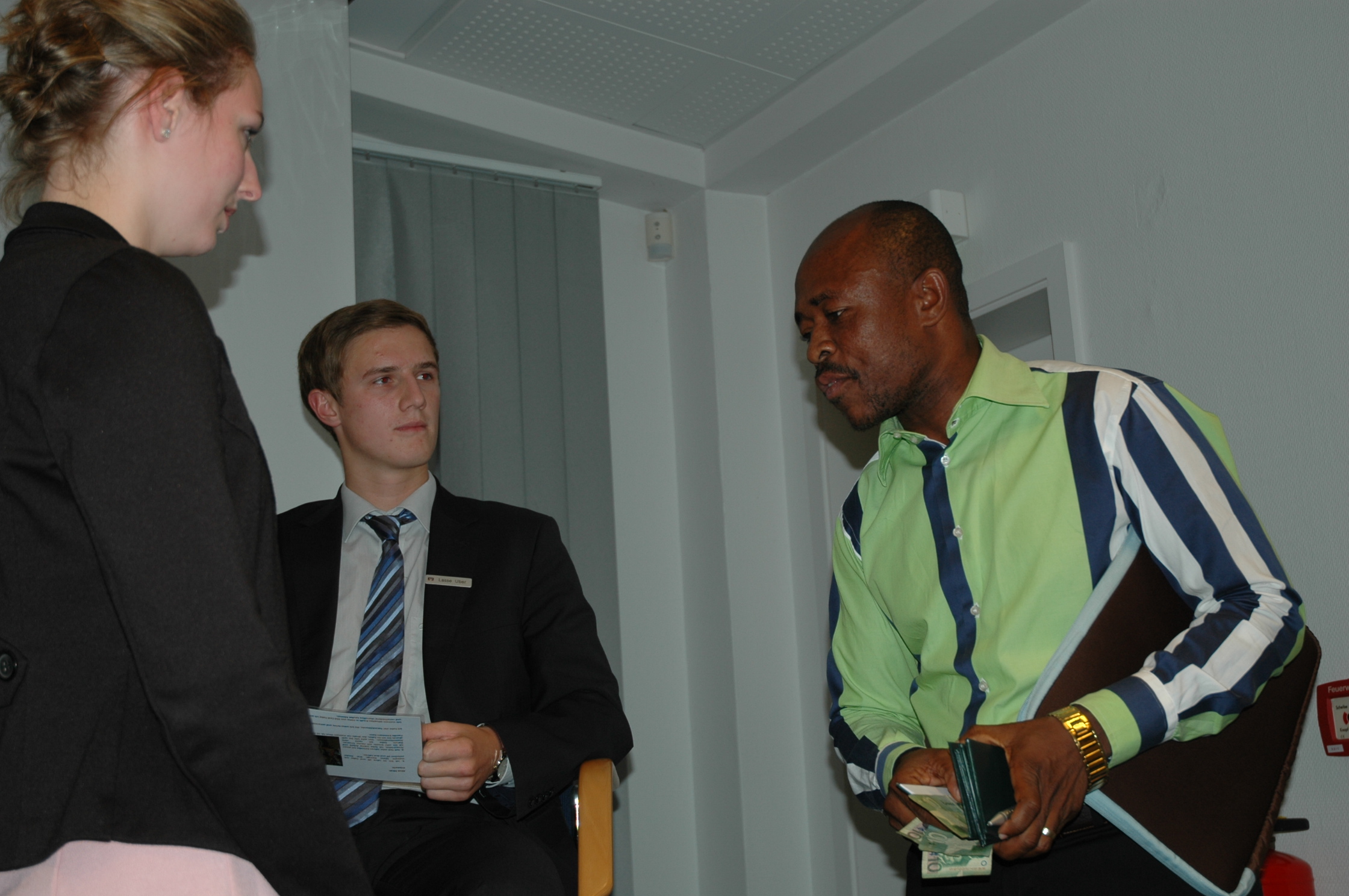 Jever – „Leute, das wird kein Urlaub hier!“ Ein Bankberater, der ein Gespräch bei uns so anfangen würde, wäre seine Kunden und seinen Job ziemlich schnell los. „That’s no holiday here“, genau so beginnt Gaeten Dery in der Volksbank Jever sein Treffen mit einer Kreditnehmergruppe. Und so geht es auch weiter: Dem Kunden, der seine Rate nicht zahlen kann, weil sein Kind krank war, gibt er mit auf den Weg, dann werde es Zeit, dass er sich eine Police der nationalen Krankenversicherung besorgt. Dem anderen, der einen höheren Kredit möchte, veranschaulicht er drastisch, was passieren wird, wenn er sein Geschäft zu schnell aufbaut und den Überblick verliert. Gaeten Dery ist ein Mann der klaren Ansage, er redet eindringlich, er gestikuliert, er wirkt bestimmend, wie ein strenger Lehrer. Aber er lächelt und überhaupt, er kann auch anders: Der Frau, die Schwierigkeiten hat, ihr Kind unterzubringen, wenn sie arbeitet, verspricht er: Bis zum nächsten Mal hab ich eine Lösung.