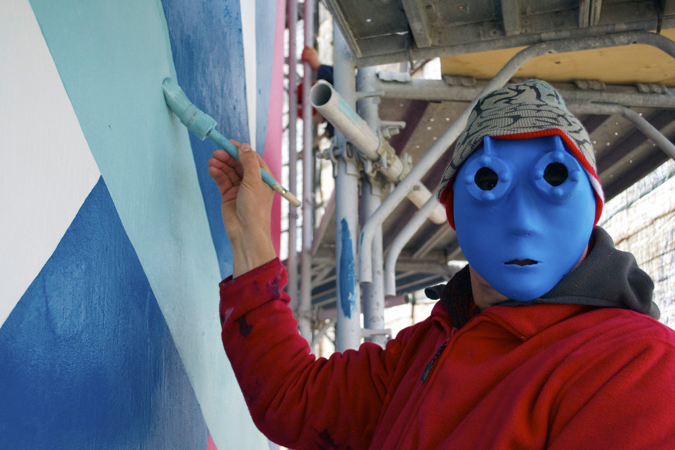 Dejo, einer der Begründer des Toyismus, mit seiner Marke, mit der er in der Öffentlichkeit auftritt. Die Botschaft: Die Kunst ist wichtig, nicht der Künstler. Foto: Toyism Studio