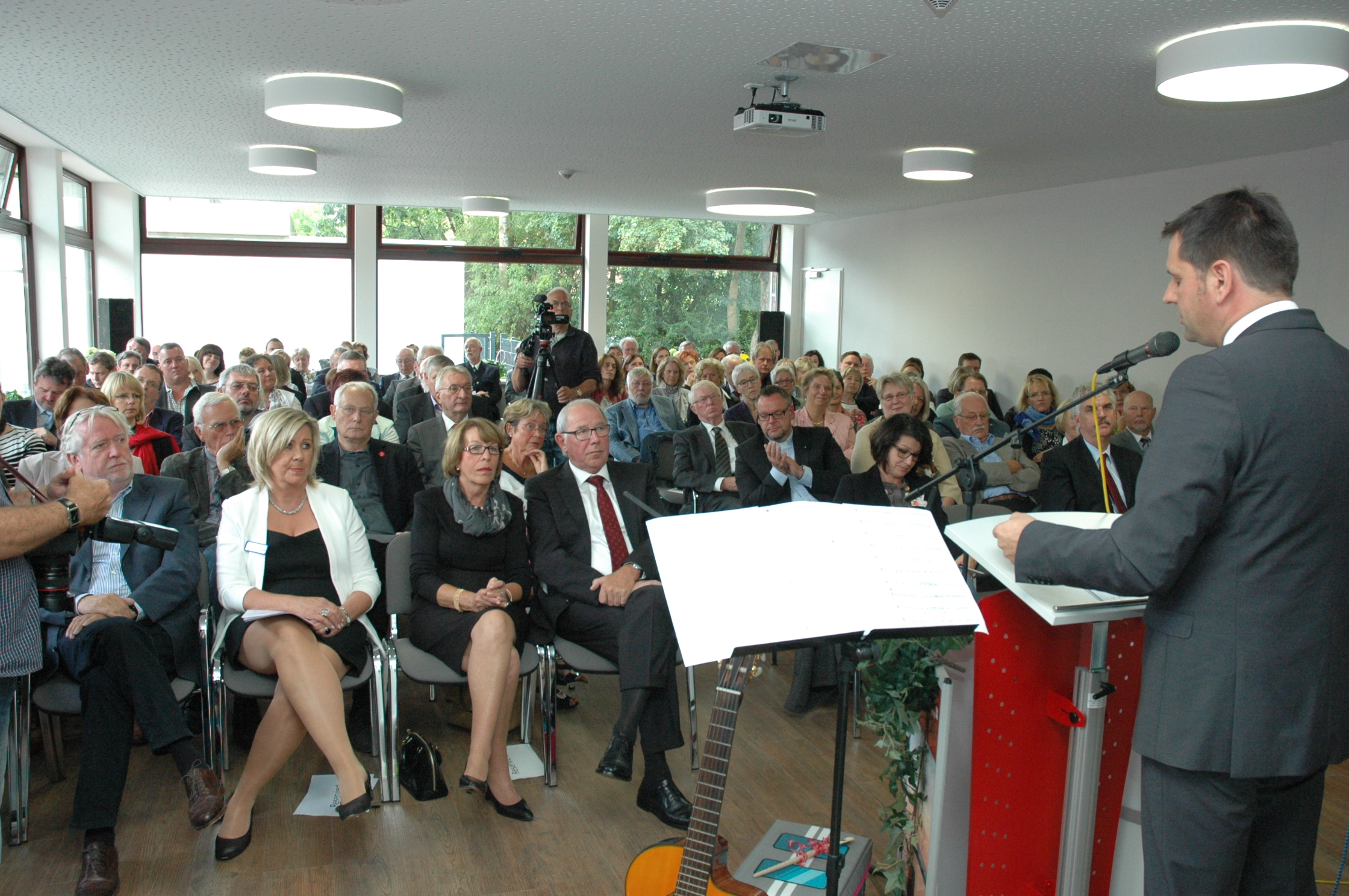 Mit der feierlichen Eröffnung und Segnung des Hauses kann sich das Projekt „Kinder- und Jugendhospiz vor den Toren der Nordsee“ jetzt seiner eigentlichen Aufgabe widmen. Im Kinder- und Jugendhospiz Joshuas Engelreich läuft seit Mittwoch, 20. August 2014, der Betrieb. Während knapp 200 geladene Gäste den Rednern und der Band „Musica Butjensis“ im Seminarraum folgten, ging der Hospizalltag im Hauptgebäude mit den ersten betroffenen Familien weiter. Frieslands Landrat Sven Ambrosy erinnerte daran, dass es vor kurzem erst Urteile gab, in denen Seniorenanlagen nur in Gewerbegebieten entstehen dürften. „Es ist wichtig, dass es solch einen Ort mitten im Leben gibt“, hielt er dagegen.