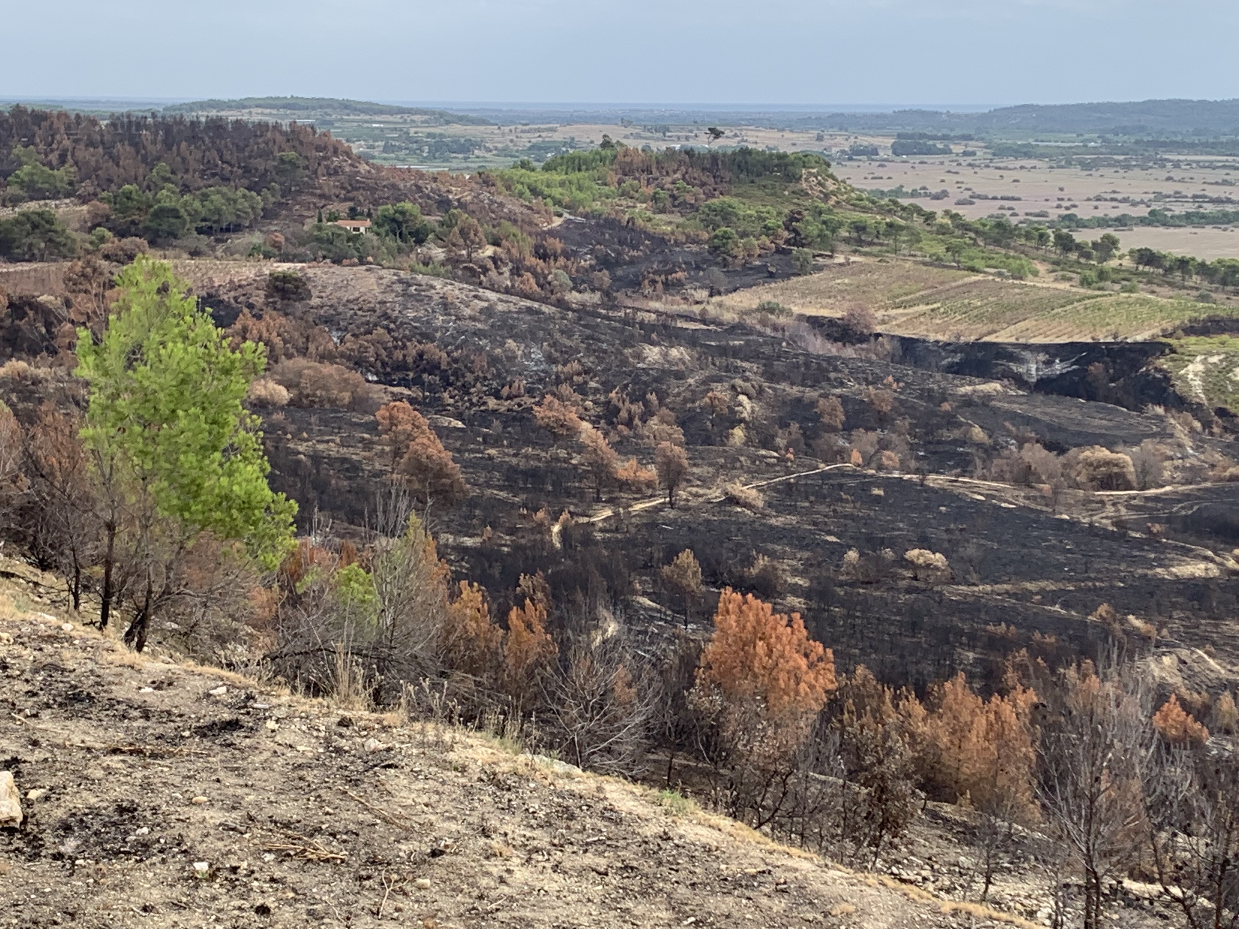 Drei Monate nach dem Waldbrand. Les collines de Nissan-lez-Enserune, Languedoc. Foto: Helmut Burlager
