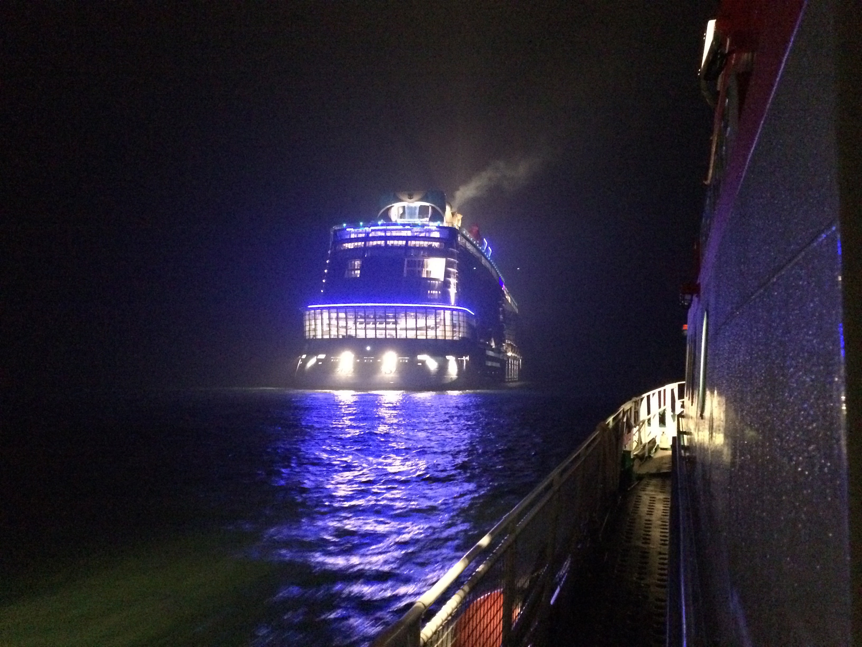 Die auf der Meyer Werft in Papenburg gebaute „Quantum of the Seas“ befindet sich in der Nordsee auf Probefahrt. Die Alarmierung des Seenotkreuzers war um kurz nach 1 Uhr erfolgt. Ein Hubschrauber konnte wegen des diesigen Wetters nicht fliegen. In Begleitung einer Borkumer Ärztin fuhren die Seenotretter den Einsatz und brachten den Patienten in das niederländische Eemshaven.