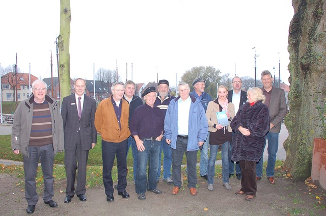 Foto: Sponsoren, Interviewpartner, Fischer und Gewährsleute sorgten für die Erstellung eines Buches des Sprachwissenschaftlers Prof. Klaus Siewert (5. v. rechts). Mit von der Partie Museumsleiter Manfred Sell (3. v. r.). Bild: Klaus Homola