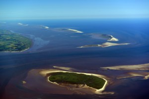 Atemberaubende Luftaufnahmen. Minsener Oog mit der dahinterliegenden Inselkette des Ostfriesischen Insel. Foto (c): Foto-Design Klaus Schreiber